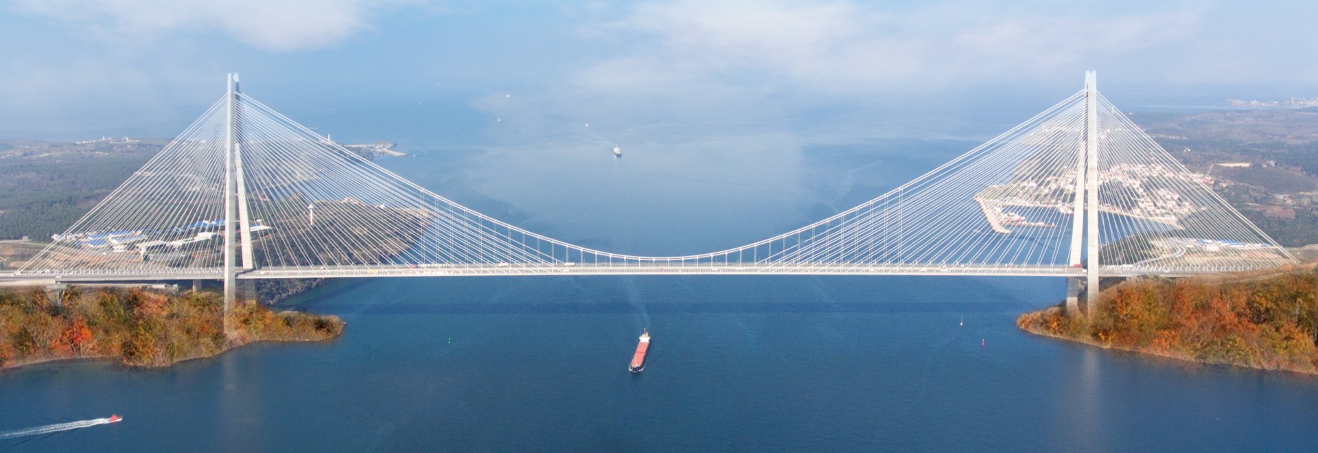 En uzunu 597m olmak üzere, 176 eğik askı kablosu, 8.400 ton çelik (1960 Mpa) ve paralel halatlardan oluşuyordu.